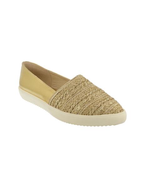 Zapato para mujer de La Strada en ecopiel color oro. Piso de goma.