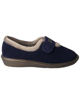 Zapatilla de casa fabricada en ante color beige. Interior y forro textil afelpado. Cierre con velcro. Planta almohadillada. Piso de goma antideslizante. Fabricado en España.
