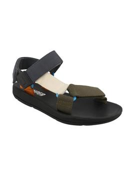 Sandalia para hombre de Camper. Confeccionada en tejido técnico reciclado, en color blanco, verde, naranja y gris. Cierre ajustable con velcro. Suela Eva para mayor ligereza.