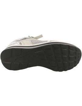 Sneaker para mujer de Francesco Milano. Confeccionado en color gris y plata, con tejido efecto malla en la pala y laterales. Estas zapatillas se ajustan con cordones y cremallera. Plantilla extraíble. Piso de goma.