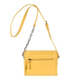 Bolso bandolera para mujer de Binnari fabricado en nylon de color amarillo. Asa de polipiel y un extremo con eslabones formando una pequeña cadena. Acceso a compartimento principal levantando la solapa de cierre con imán. Exterior: en la solapa encontramos el logo decorativo en el mismo tono que el bolso y la parte trasera cuenta con un bolsillo con cremallera. Interior: 2 bolsillos, uno de ellos con cremallera.
