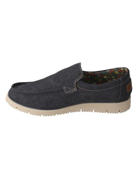 Mocasín para hombre de Imac confeccionado en textil de color azul. Interior textil. Plantilla extraible de piel. Piso de goma. Hecho en Italia.