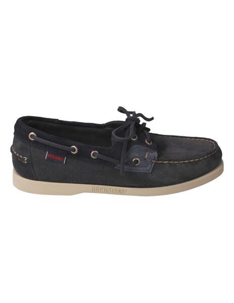 Náutico para hombre de Sebago confeccionado en ante de color azul cosido a mano por artesanos con la máxima calidad. Interior en piel. Cordón y pasacintas en piel. Piso de goma.