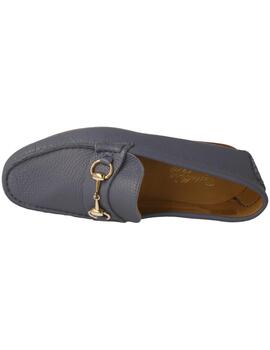 Mocasín para hombre de Castellano fabricado en piel de color azul. Interior y plantilla en piel. Detalle de adorno metálico de color oro en el empeine. Piso de goma. Hecho a mano por los mejores artesanos y con la máxima calidad.