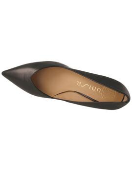 Zapato para mujer de Unisa confeccionado en piel de color negro. Interior y plantilla en piel. Escote en V que estiliza sin renunciar a la comodidad. Tacón de aguja forrado de 6,5 cm. Suela de goma antideslizante. Hecho en España. Un diseño refinado para un look sofisticado.