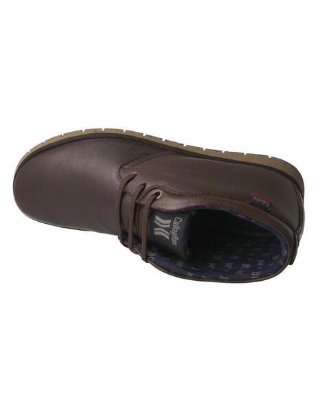 Botín de hombre Callaghan en color marrón fabricado en piel natural curtida de forma artesanal y caracterizada por el confort que le confiere al zapato. Interior y plantilla textil. Bordes acolchados en el talón. Cierre con cordones. Suela extralight y flexible que reduce al máximo el peso del zapato siendo muy resistente al desgaste y la deformación. Este botín es ideal para el día a día ya que se adapta al pie y al aumento de anchura que experimenta al caminar. Hecho en España.