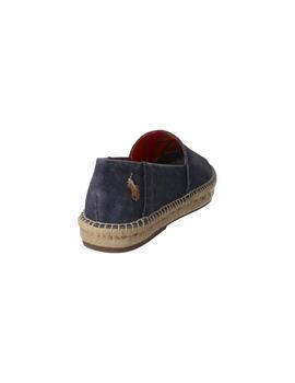 Alpargata para hombre de Ralph Lauren confeccionada con loneta lavada en color azul y puntera tejida redondeada. Caballo multicolor marca de la casa de Ralph Lauren bordado en el exterior del talón. Forro de loneta de algodón con estampado. Placa de piel con el logotipo 'Polo Ralph Lauren' en la suela. Entresuela de yute. Suela de goma con textura. Un calzado clásico para el buen tiempo.