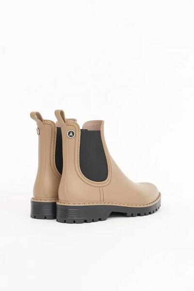 Botas de goma de caña baja para mujer de Tantä en color beige con acabado mate , que ofrecen una protección 100% impermeable. Capa exterior 100% PVC. Forro 100% poliéster. Elástico en los laterales que facilita el calce. Tirador trasero. Plantilla de confort extraíble. Suela 100% PVC. Ideales para los días de lluvia, la suela ligera con excelente tracción asegura un paso firme y comodidad para el uso diario.