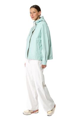 Chaqueta impermeable corta de TANTA modelo Dhuda de corte holgado, confeccionada con un tejido de mezcla de algodón impermeable en color azul claro. Este material atemporal es transpirable y resistente al viento. Los detalles de la prenda incluyen costuras selladas, mangas raglán, una cremallera de doble cursor y cierres a presión ocultos. Capucha con cordón ajustable, visera incorporada y cuello alto. Su elegante silueta en línea A cuenta con aberturas laterales redondeadas para un look más femenino.