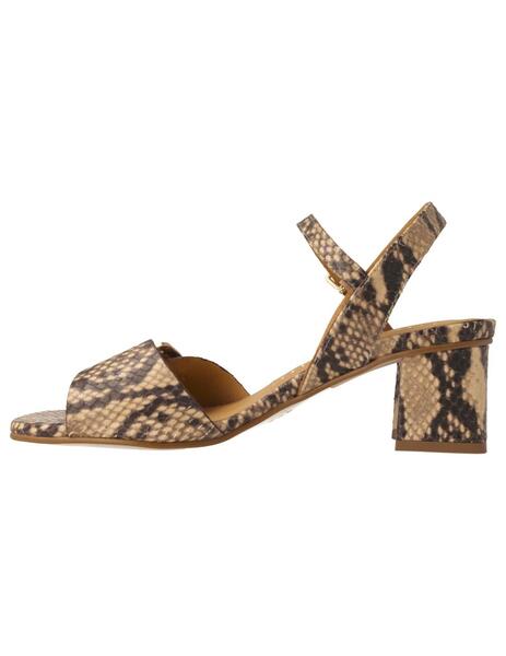 Sandalia para mujer de Pedro Miralles confeccionada en piel con dibujo de mancha en distintas tonalidades de beige. Inteior en piel. Plantilla acolchada para mayor confort. Cierre con hebilla ajustable en el empeine y tobillo. Cómodo tacón forrado al tono de 4.5 cm. Piso de suela sintética. Estas sandalias combinan estilo y comodidad para que puedas llevarlas todo el día sin cansarte. Hecho en España.