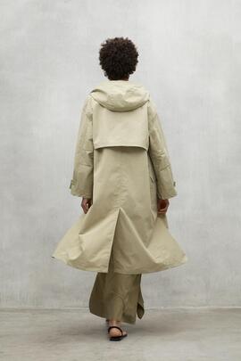 La chaqueta modelo Juno para mujer en color beige de la firma Ecoalf, elaborada con un material principal de 100% poliamida reciclada, presenta un corte holgado. Presenta una capucha ajustable con topes, malla interior con forro, bolsillos en la parte delantera, cierre frontal con cremallera y botones a presión y cinturon para un perfecto ajuste a la cintura. Los hombros están termosellados y el logo de la firma está presente en el interior de la espalda. Su diseño impermeable y transpirable le aporta a tu look un toque diferente como prenda exterior, ideal para mantenerte cómoda y estilosa en cualquier clima.