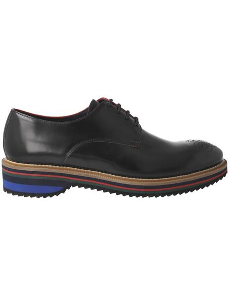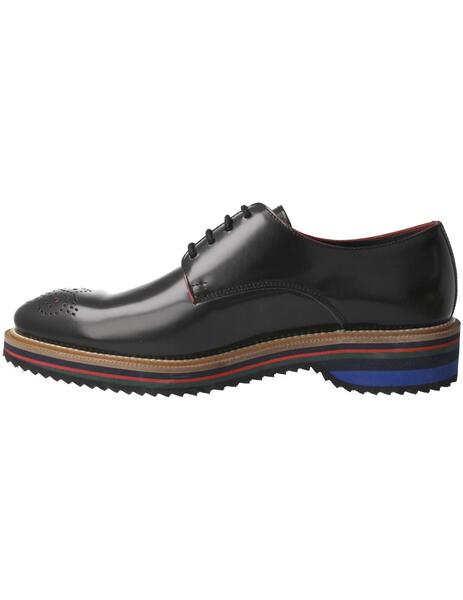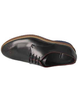 Zapato para hombre de Keep Honest en color negro, fabricado con piel Florentic que realza la elegancia y sofisticación del calzado. Detalle en la puntera de picado inglés con fondo rojo. Cierre con cordones. Piso extra ligero multicolor. Un zapato hecho en España con un diseño elegante y atemporal.
